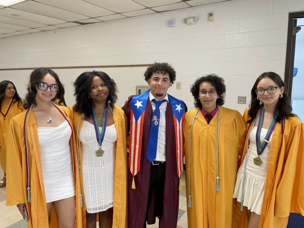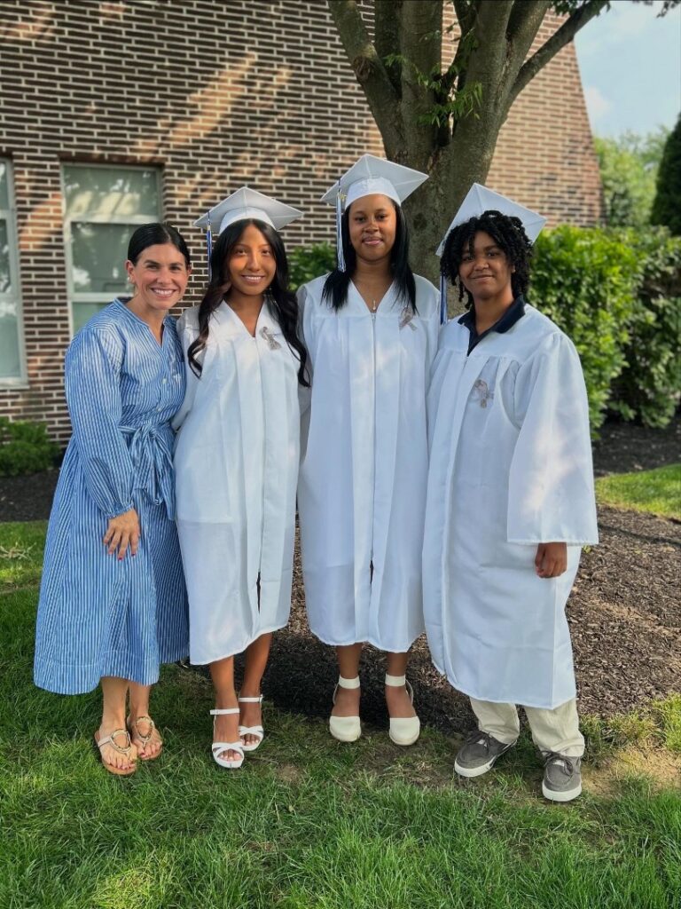 Camden Catholic HS grads with Elena receive their Domenica Foundation t-shirts